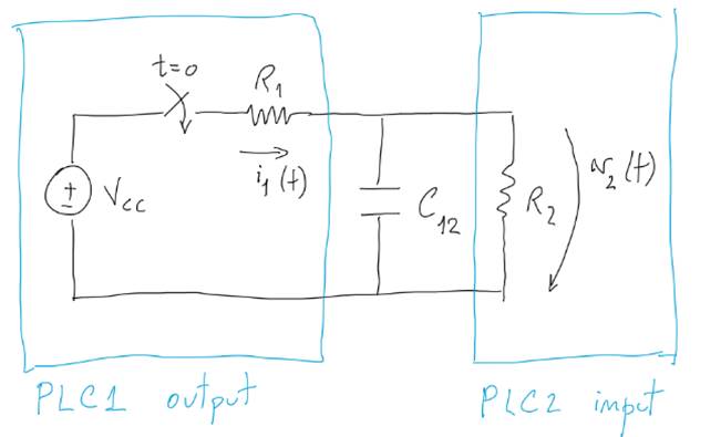 3: Simple model of PLC input and output connected, having in between a